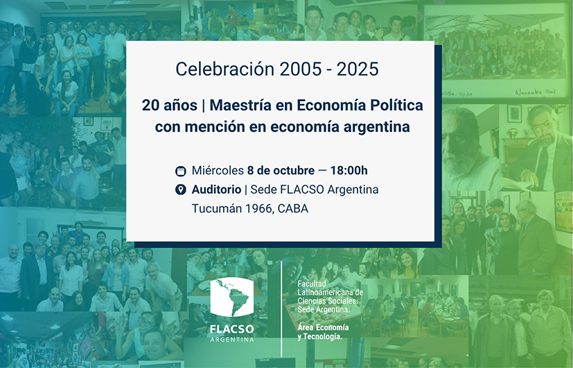 La Maestría en Economía Política con mención en Economía Argentina invita al acto de celebración de su 20º aniversario.