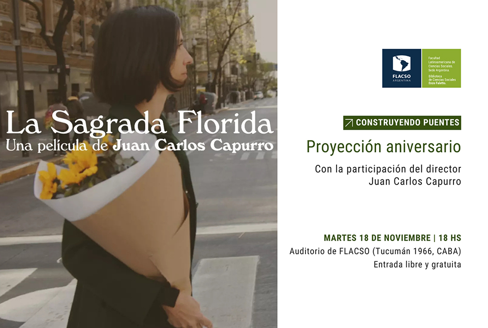 El Espacio “Construyendo puentes” de la Biblioteca “Enzo Faletto” de la FLACSO Argentina invita a la proyección de “La sagrada Florida”, un film independiente de Juan Carlos Capurro, con fotos de Lui Abadí. La cita es el martes 18 de noviembre a las 18.00 hs en el auditorio de FLACSO Argentina (Tucumán 1966, CABA). El evento contará con la participación de su director, Juan Carlos Capurro, la productora Julia Multiva y demás colaboradores. La entrada es libre y gratuita, disponible hasta agotar la capacidad de la sala.