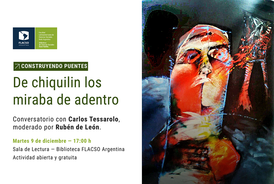 En una nueva edición de “Construyendo puentes” de cierre de año, el martes 9 de diciembre a las 17 hs., la Biblioteca “Enzo Faletto” de FLACSO Argentina invita al encuentro en el cual conoceremos las vivencias de un artista que desde muy temprana edad tuvo la oportunidad de conocer a grandes maestros de las artes plásticas: Carlos Tessarolo. Nació en Buenos Aires en 1949. Acompañó a su padre, Héctor Tessarolo, también pintor, visitando los talleres de grandes maestros como el de Benito Quinquela Martín de quien eran amigos.