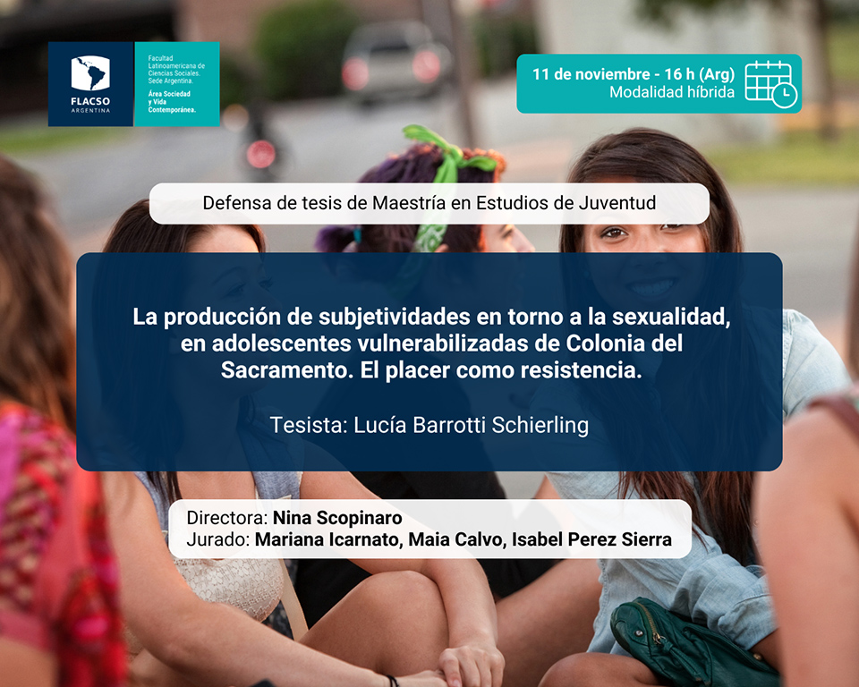 La Maestría en Estudios de Juventud de la FLACSO Argentina invita a la defensa de tesis de Lucía Barrotti Schierling, a realizarse el día martes 11 de noviembre a las 16.00 h (hora argentina).