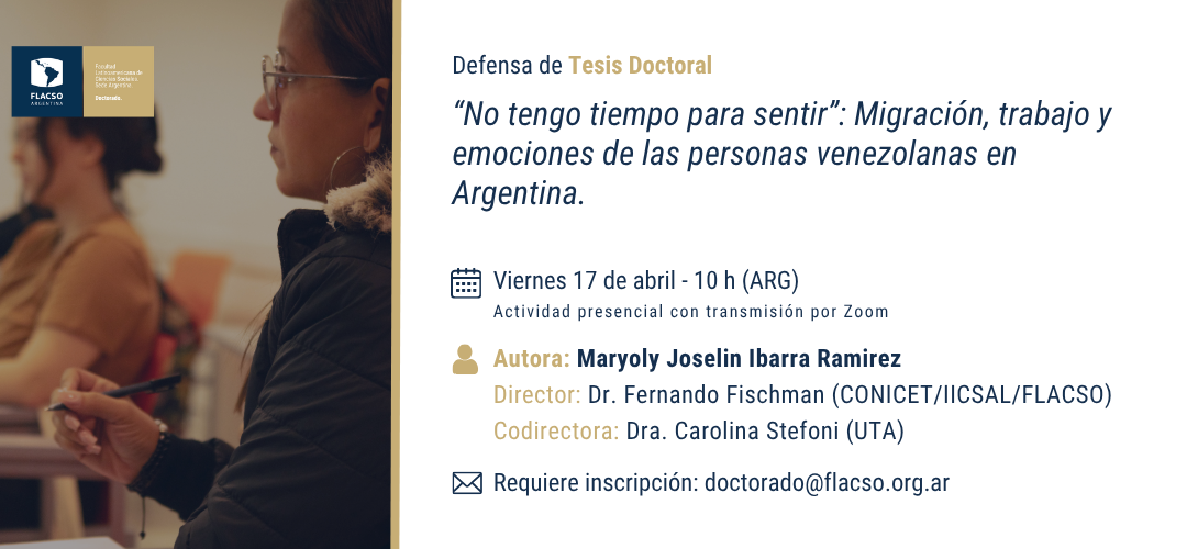 El Programa de Doctorado en Ciencias Sociales de FLACSO Argentina invita a la defensa pública de la tesis doctoral de MARYOLY JOSELIN IBARRA RAMIREZ.