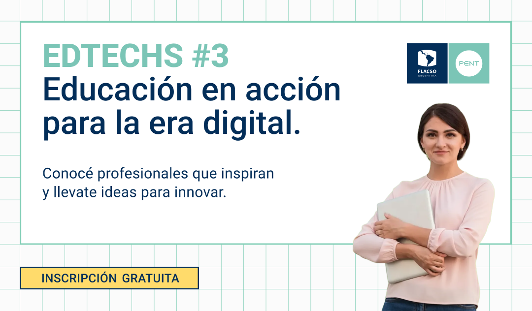 El Proyecto Educación y Nuevas Tecnologías (PENT) de FLACSO Argentina invita al tercer encuentro del ciclo “EdTechs | Profesionales que inspiran”, que se realizará el jueves 5 de marzo a las 19 h (ARG). Este encuentro virtual reúne a profesionales egresados de los posgrados del PENT que trabajan en diferentes territorios educativos, desde el desarrollo de videojuegos hasta proyectos con impacto social y políticas públicas.