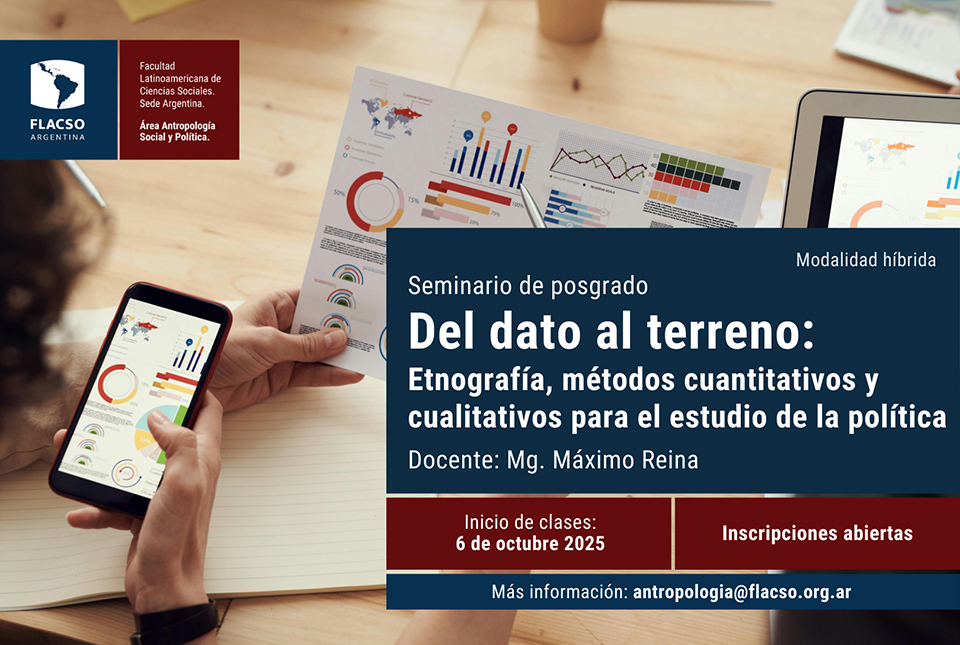 La comprensión de los fenómenos políticos en el siglo XXI requiere cada vez más de un enfoque interdisciplinario que combine herramientas de la antropología, la sociología y la ciencia política. En este marco, el seminario “Del dato al terreno: Etnografía, métodos cuantitativos y cualitativos para el estudio de la política” propone un recorrido por distintas estrategias de investigación social, integrando análisis cualitativos, cuantitativos y etnográficos, con especial énfasis en su aplicación práctica.