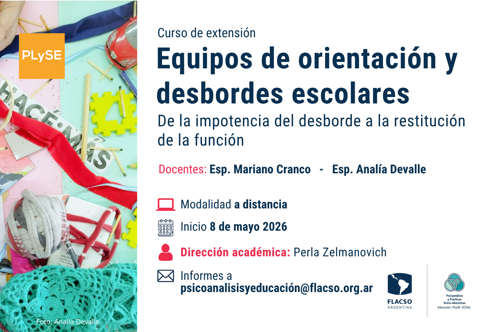 El curso presenta claves teóricas para pensar la función de profesionales que se desempeñan en el campo de la orientación escolar y de apoyo a la tarea educativa ante las problemáticas actuales. Ofrece herramientas teórico-prácticas para abordar las demandas escolares. Se trabaja con escenas de la propia práctica de los equipos abocados a la orientación escolar.