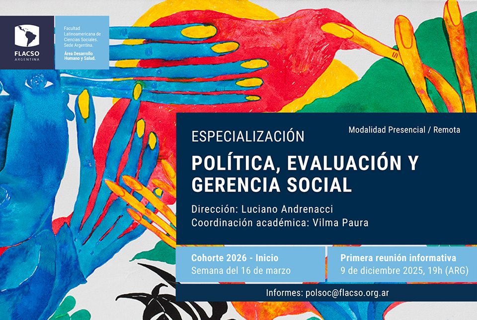 IMPORTANTE: El Posgrado en Políticas Sociales a partir de la cohorte 2023 se dicta bajo la modalidad presencial remota; combinando la cursada a distancia (sincrónica) con una semana de encuentros presenciales al año en la Sede de FLACSO Argentina, ubicada en la Ciudad de Buenos Aires (para más detalles, clic aquí).