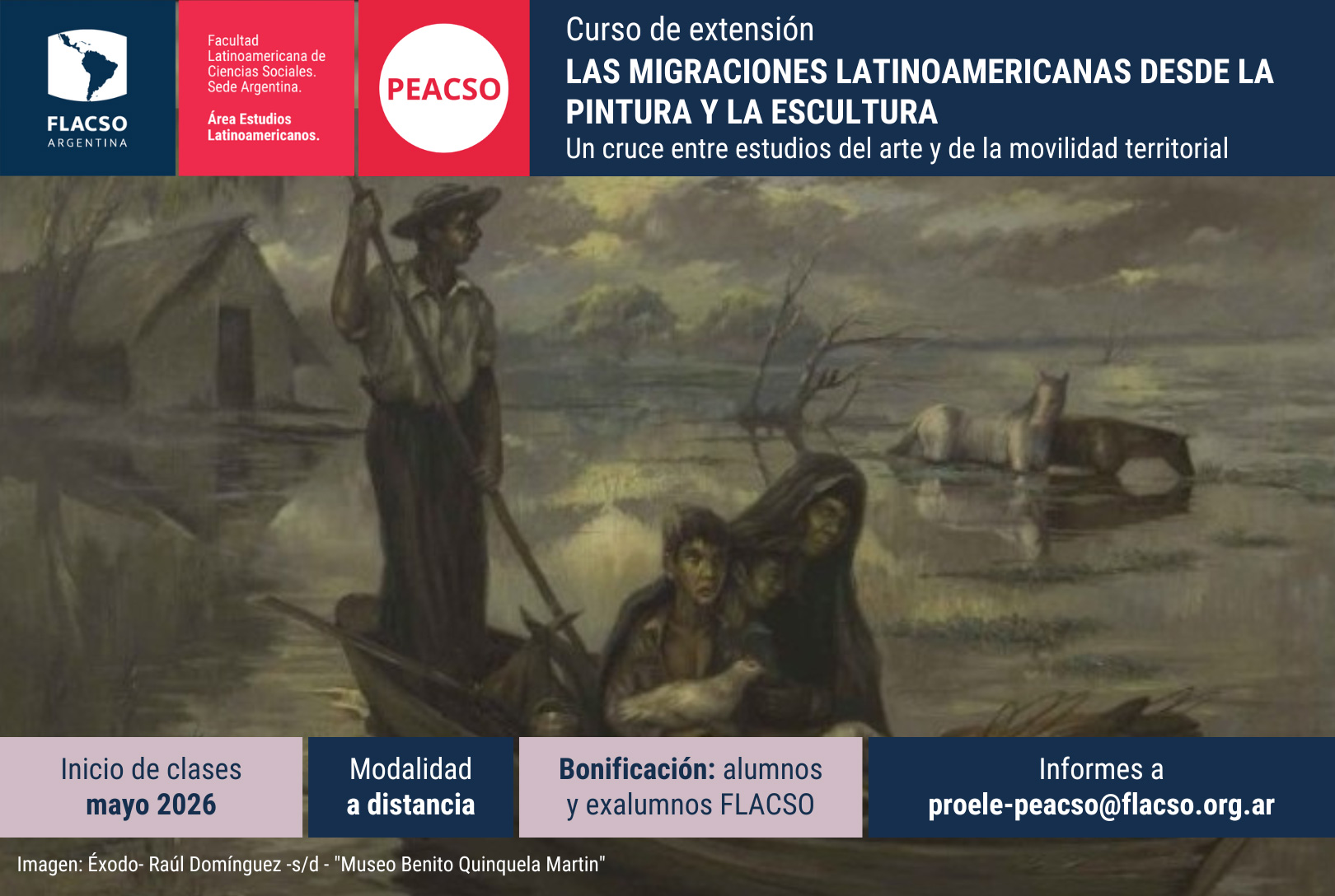 Saber más de migración apoyándose en el estudio de obras de arte, y saber más sobre pintura y escultura con la guía de las principales líneas explicativas de los estudios migratorios, constituye el propósito combinado de este curso. De allí que el equipo docente está conformado por una docente especialista en migración y una docente especialista en pintura y escultura, ambas con trayectoria académica y profesional en las áreas de incumbencia de esta propuesta de formación.