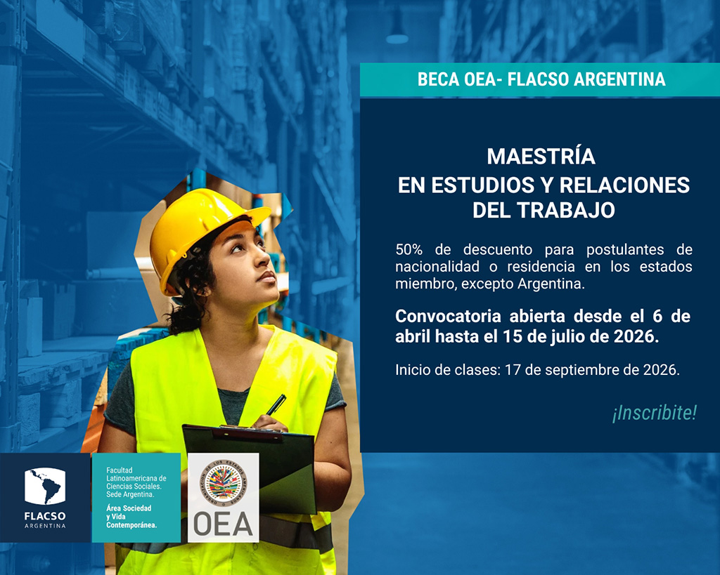La Organización de los Estados Americanos (OEA) y la Facultad Latinoamericana de Ciencias Sociales‐Argentina (FLACSO Argentina) han firmado un convenio de cooperación para brindar 20 becas de estudios a profesionales con interés en la Maestría en Estudios y Relaciones del Trabajo.