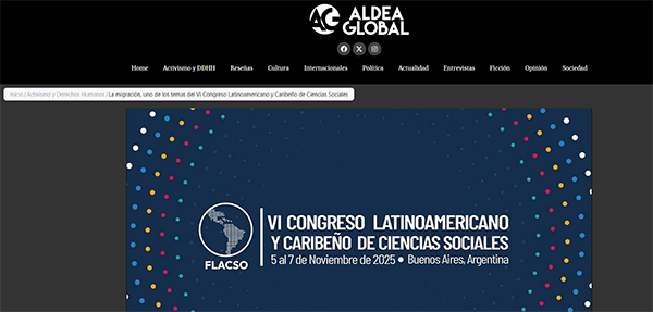 El sitio Aldea Global publicó una nota sobre el IICSAL en el VI Congreso de FLACSO La periodista Agustina Bordigoni escribió una nota en el sitio web Aldea Global sobre los panales que organiza el IICSAL (FLACSO-CONICET) en el VI Congreso Latinoamericano y Caribeño de Ciencias Sociales que se llevará a cabo en Buenos Aires, Argentina, los próximos días 5, 6 y 7 de noviembre del 2025. |