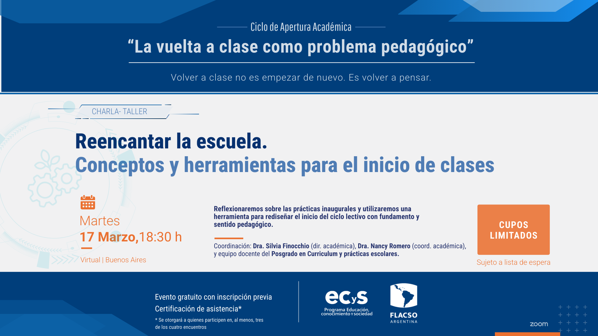 Esta actividad forma parte del Ciclo de Apertura Académica del Programa ECyS “La vuelta a clase como problema pedagógico”, una serie de encuentros destinados a reflexionar colectivamente sobre los desafíos actuales de la educación.