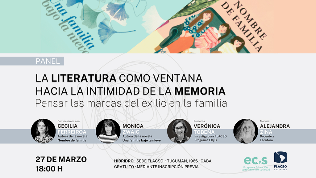 En el marco de la conmemoración de los 50 años del golpe militar en Argentina, el Programa Educación, Conocimiento y Sociedad (ECyS) de FLACSO Argentina invita al panel “La literatura como ventana hacia la intimidad de la memoria. Pensar las marcas del exilio en la familia”, un espacio de diálogo que propone reflexionar sobre la memoria, el exilio y las historias familiares a partir de la literatura.