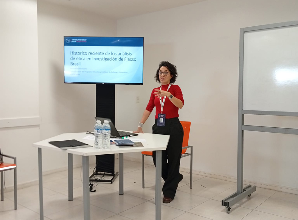 En el caso de Renata Montechiare, hizo un recorrido de los aspectos éticos que se fueron incorporando acordes con la normativa brasileña y de la sede central de Flacso Regional hasta la implementación de un código de ética específico para la investigación. Un aspecto relevante que destacó es la inexistencia de un protocolo similar para el enfrentamiento del racismo entre las unidades académicas.