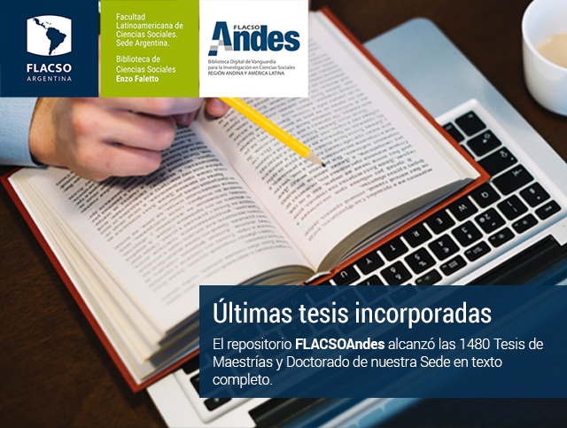 El repositorio FLACSOAndes incorporó nuevas Tesis de Maestrías y Doctorado de nuestra Sede en texto completo, el repositorio ya suma más de 1.480 trabajos de estudiantes de nuestra institución.