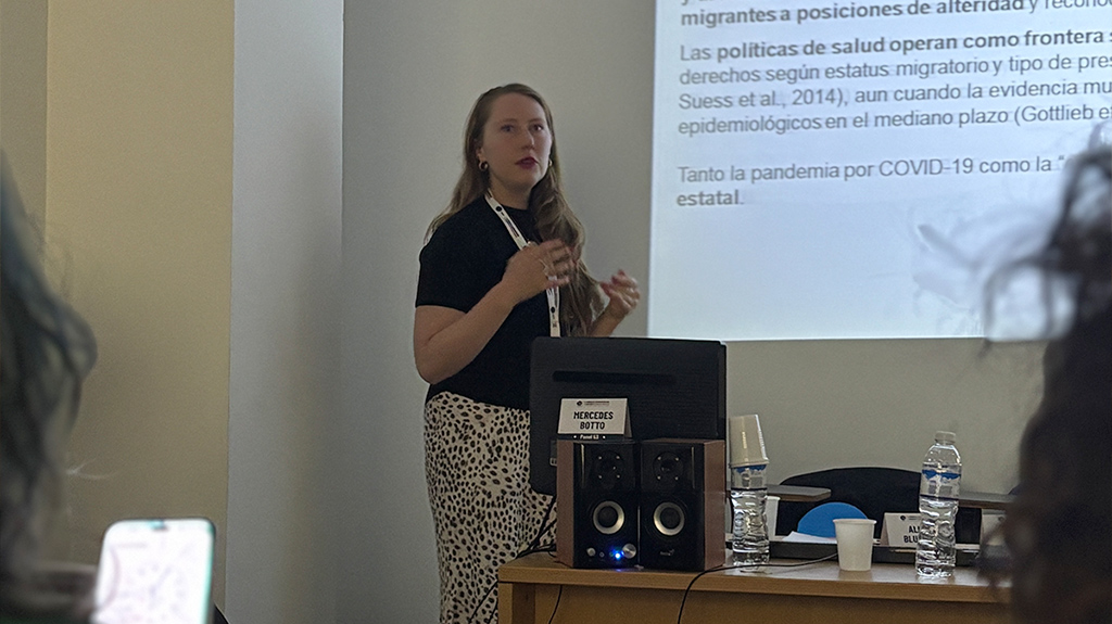 La coordinación del panel estuvo a cargo de la Dra. Mercedes Botto, quien remarcó la importancia de incluir diversas perspectivas territoriales para construir una discusión regional sobre políticas sociales enfocadas en la salud de las poblaciones migrantes en América Latina. También, habló de la necesidad de focalizar sobre situaciones críticas, como la pandemia COVID-19 o el éxodo masivo de venezolanas y venezolanos migrantes y refugiados en la región. Luego, se llevaron a cabo tres presentaciones.
