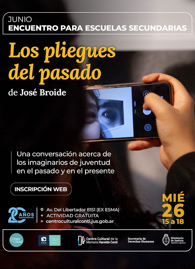 Los pliegues del pasado es un ensayo fotográfico que retrata la vida cotidiana de adolescentes en la primera mitad de la década del setenta. Para este encuentro, invitamos a jóvenes de distintas instituciones educativas a recorrer la muestra y compartir una jornada de intercambio con el objetivo de abrir una conversación en torno a los imaginarios de juventud pasados y presentes.